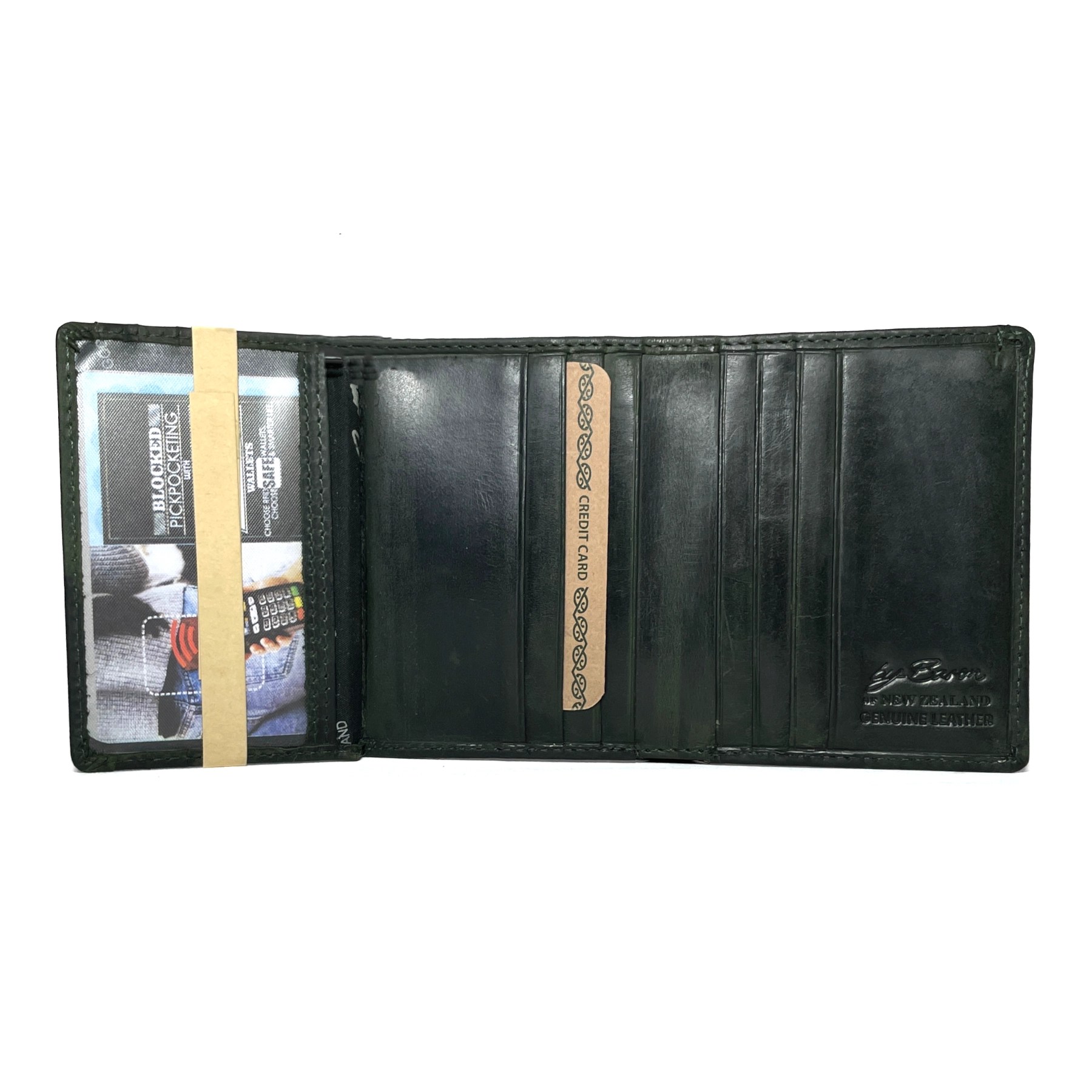 When closed: 110mmL x 85mmH x 25mmD, Dark Green, Blocks RFID signals to protect all your contactless payment cards from identity theft