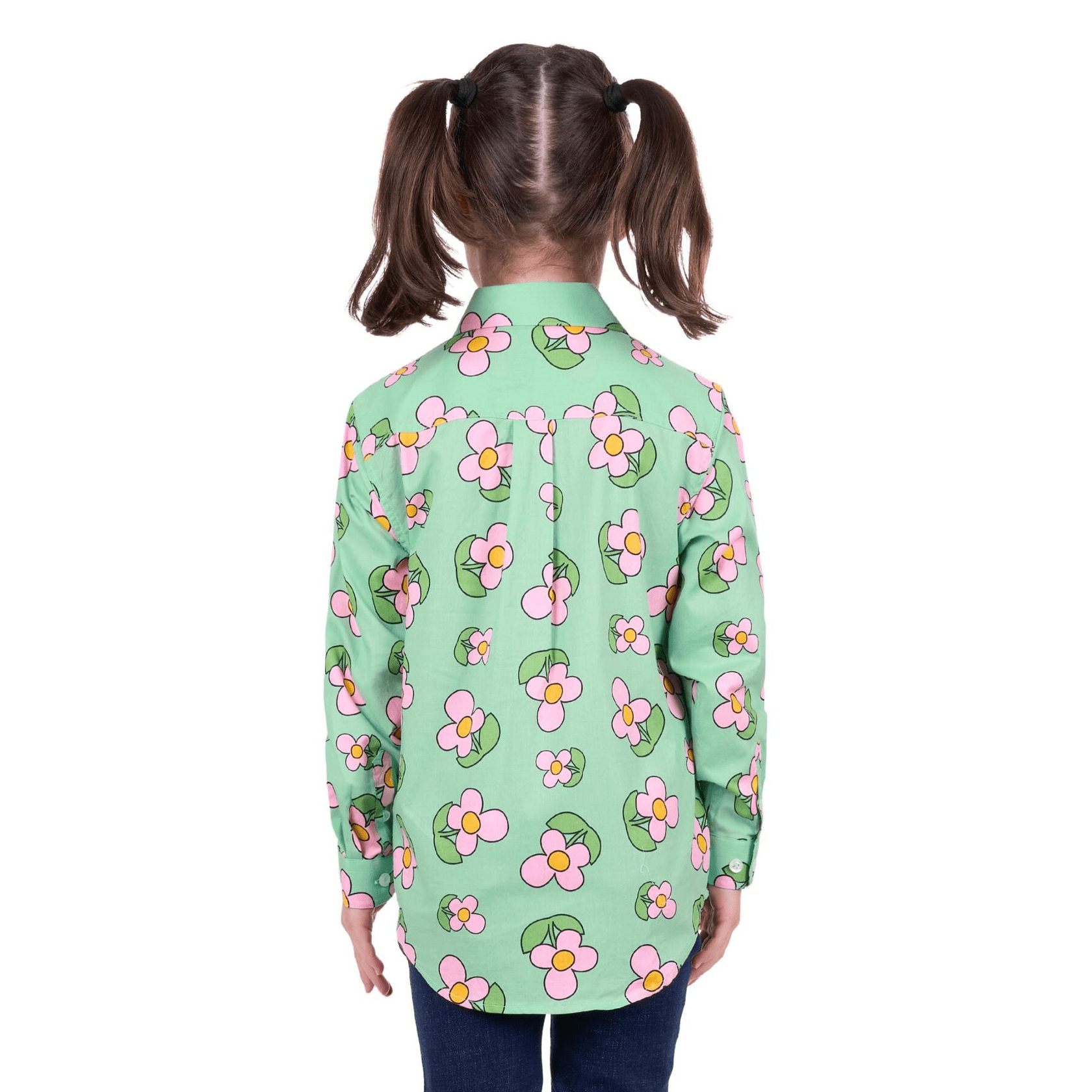 Adorable shirt, Green with pink flowers, Front chest pockets, Logo buttons