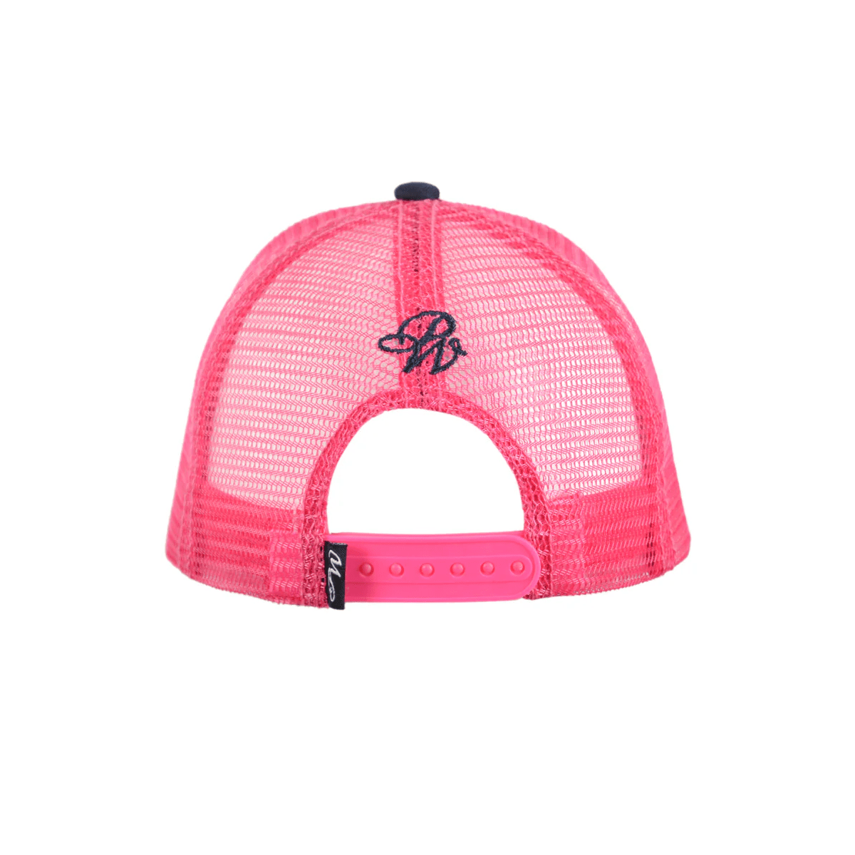 Main: 100% Cotton, Peak: 100% Cotton, Mesh: 100% Polyester, One Size, Pink/Navy