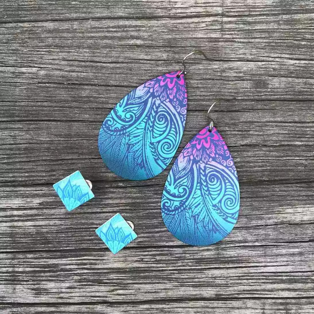 Tribal Earth Feather Mandala Earring Set