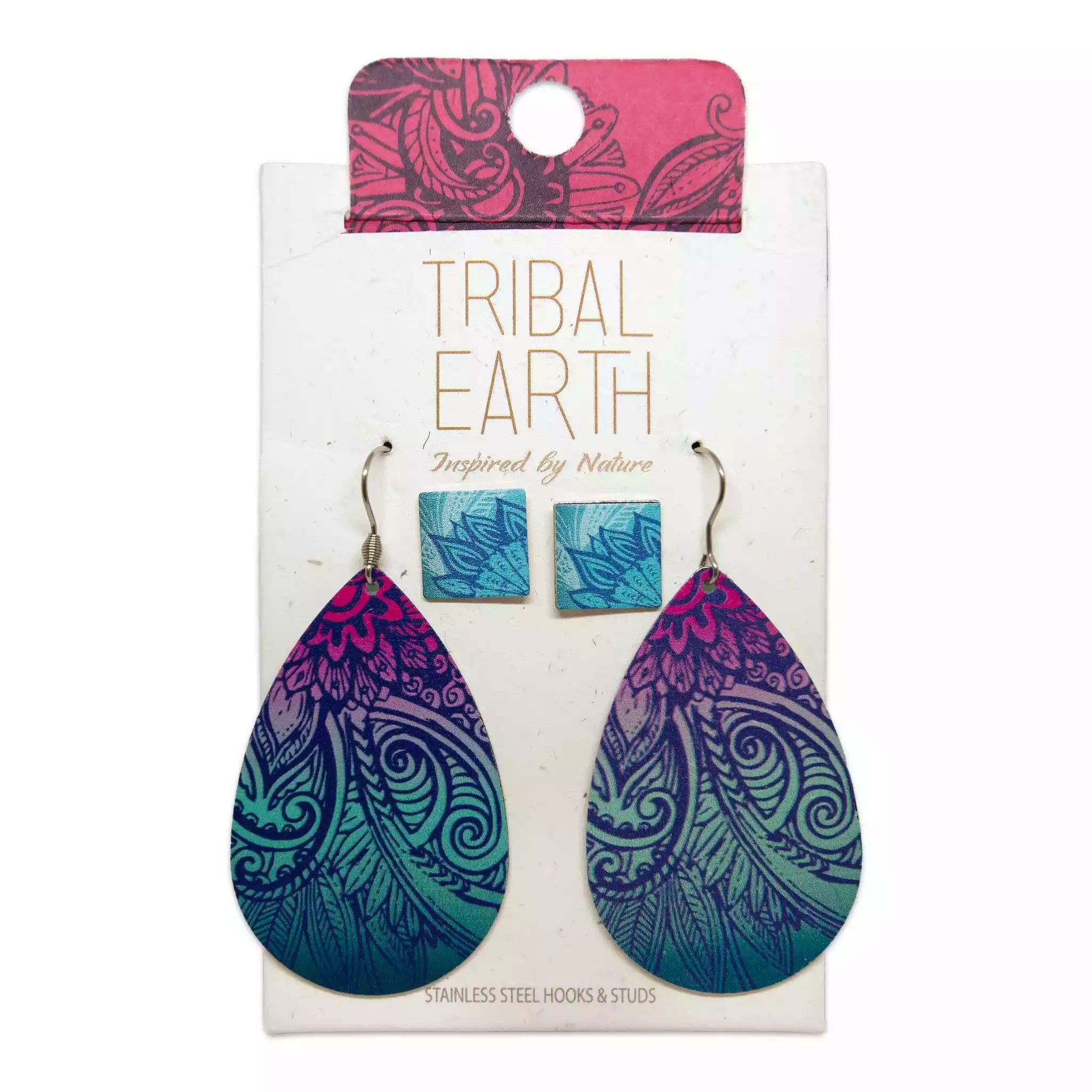 Tribal Earth Stainless Steel Teardrop Earring Set plus Ear Studs