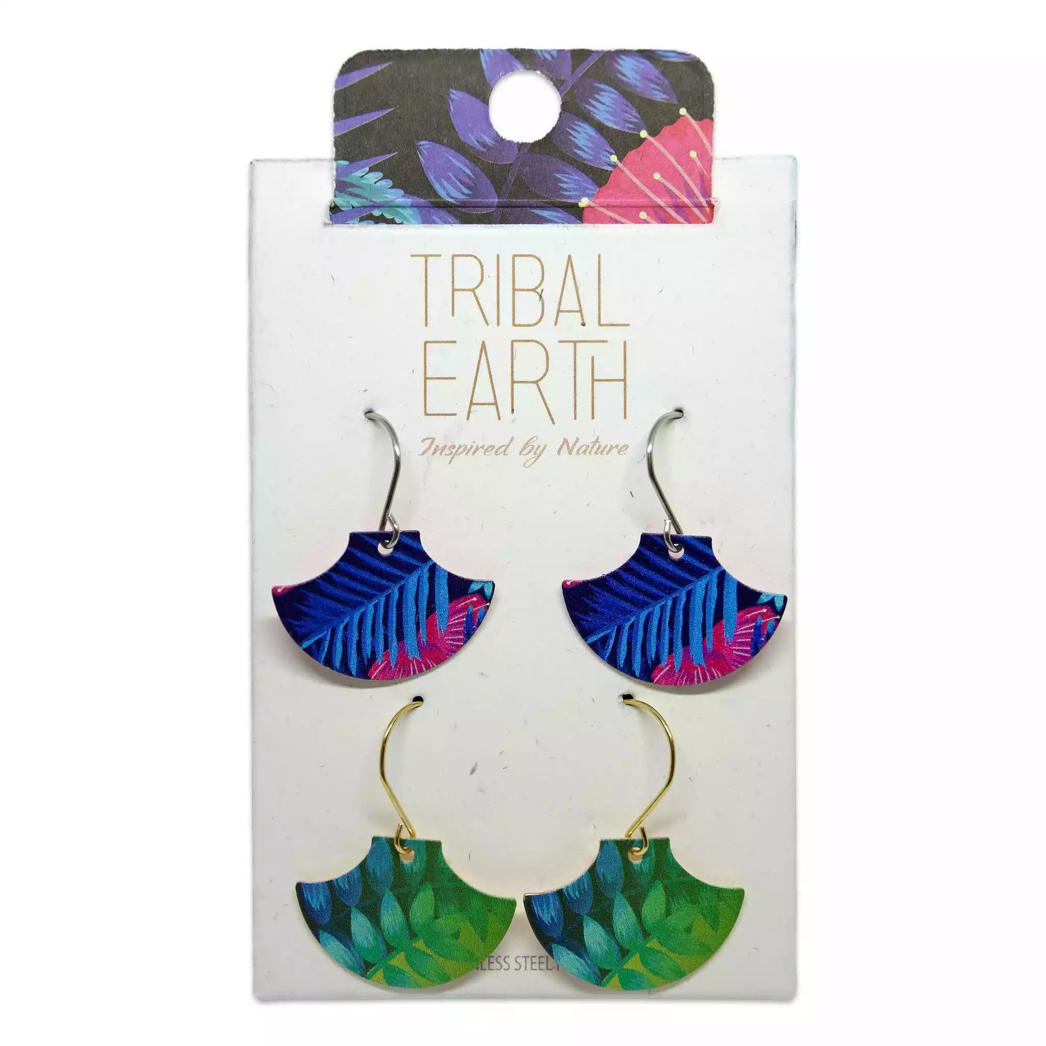 Tribal Earth Pagoda Stainless Steel Earring Set