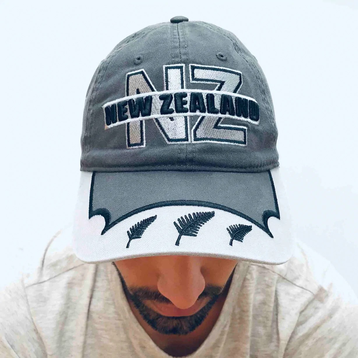 A unisex Wild kiwi cap with embroidered New Zealand and Ferns